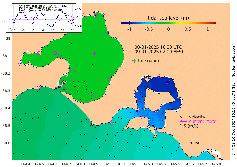 -75cm San Remo -81cm Elizabeth Island -102cm Bouchier Channel -100cm Tooradin -67cm Cowes Jetty -73cm Western Port (Stony Point) -98cm Western Port (Sandy Point) -35cm Flinders Jetty -12cm Mornington -14cm Sandringham -10cm Rosebud Jetty -11cm Hovell Pile -11cm South Channel -14cm Point Lonsdale -10cm Queenscliff -12cm West Channel Pile -17cm Barwon Heads -12cm St Leonards -15cm Point Richards (Corio Bay) -15cm Point Richards Channel -16cm Geelong -10cm Werribee -15cm Altona -15cm Wilson Spit -14cm Melbourne (Williamstown) -14cm St Kilda