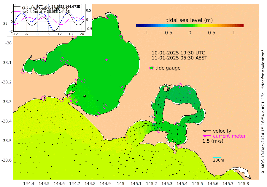 3cm San Remo -4cm Elizabeth Island -28cm Bouchier Channel -35cm Tooradin 10cm Cowes Jetty 7cm Western Port (Stony Point) -30cm Western Port (Sandy Point) 39cm Flinders Jetty -1cm Mornington -3cm Sandringham 1cm Rosebud Jetty -1cm Hovell Pile 12cm South Channel 27cm Point Lonsdale 19cm Queenscliff -1cm West Channel Pile 30cm Barwon Heads 0cm St Leonards -4cm Point Richards (Corio Bay) -4cm Point Richards Channel -7cm Geelong -1cm Werribee -4cm Altona -4cm Wilson Spit -4cm Melbourne (Williamstown) -4cm St Kilda