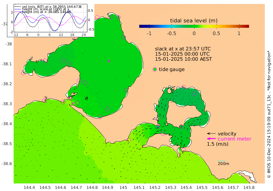 2cm San Remo -2cm Elizabeth Island -21cm Bouchier Channel -28cm Tooradin 4cm Cowes Jetty 2cm Western Port (Stony Point) -24cm Western Port (Sandy Point) 28cm Flinders Jetty -2cm Mornington -2cm Sandringham 0cm Rosebud Jetty 0cm Hovell Pile 9cm South Channel 18cm Point Lonsdale 14cm Queenscliff -1cm West Channel Pile 19cm Barwon Heads -3cm St Leonards -4cm Point Richards (Corio Bay) -5cm Point Richards Channel -6cm Geelong -2cm Werribee -4cm Altona -6cm Wilson Spit -3cm Melbourne (Williamstown) -4cm St Kilda