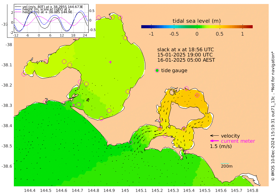 36cm San Remo 47cm Elizabeth Island 68cm Bouchier Channel 71cm Tooradin 34cm Cowes Jetty 39cm Western Port (Stony Point) 68cm Western Port (Sandy Point) 3cm Flinders Jetty 30cm Mornington 30cm Sandringham 27cm Rosebud Jetty 27cm Hovell Pile 17cm South Channel 7cm Point Lonsdale 13cm Queenscliff 28cm West Channel Pile 0cm Barwon Heads 29cm St Leonards 32cm Point Richards (Corio Bay) 32cm Point Richards Channel 34cm Geelong 27cm Werribee 31cm Altona 34cm Wilson Spit 30cm Melbourne (Williamstown) 32cm St Kilda