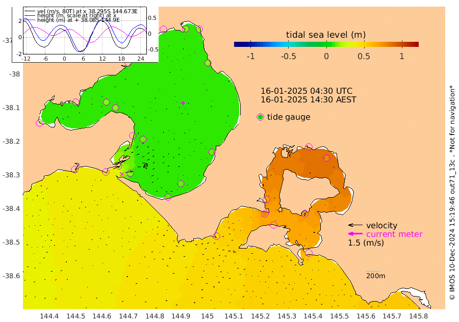 70cm San Remo 69cm Elizabeth Island 78cm Bouchier Channel 75cm Tooradin 63cm Cowes Jetty 65cm Western Port (Stony Point) 78cm Western Port (Sandy Point) 42cm Flinders Jetty 14cm Mornington 15cm Sandringham 15cm Rosebud Jetty 14cm Hovell Pile 18cm South Channel 24cm Point Lonsdale 19cm Queenscliff 15cm West Channel Pile 26cm Barwon Heads 14cm St Leonards 17cm Point Richards (Corio Bay) 16cm Point Richards Channel 16cm Geelong 14cm Werribee 15cm Altona 15cm Wilson Spit 16cm Melbourne (Williamstown) 16cm St Kilda