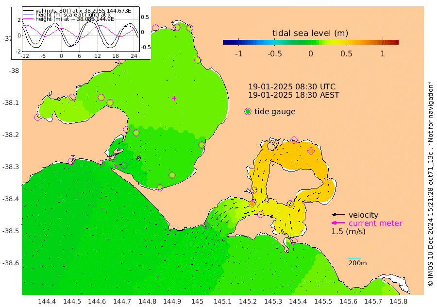 38cm San Remo 47cm Elizabeth Island 67cm Bouchier Channel 76cm Tooradin 34cm Cowes Jetty 38cm Western Port (Stony Point) 68cm Western Port (Sandy Point) -1cm Flinders Jetty 17cm Mornington 19cm Sandringham 15cm Rosebud Jetty 16cm Hovell Pile 7cm South Channel -4cm Point Lonsdale 2cm Queenscliff 17cm West Channel Pile -11cm Barwon Heads 17cm St Leonards 21cm Point Richards (Corio Bay) 20cm Point Richards Channel 23cm Geelong 20cm Werribee 19cm Altona 21cm Wilson Spit 20cm Melbourne (Williamstown) 20cm St Kilda
