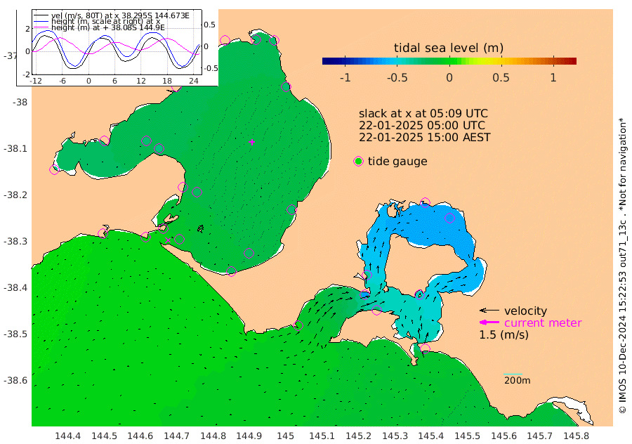 -33cm San Remo -44cm Elizabeth Island -64cm Bouchier Channel -73cm Tooradin -28cm Cowes Jetty -34cm Western Port (Stony Point) -67cm Western Port (Sandy Point) 3cm Flinders Jetty -28cm Mornington -28cm Sandringham -25cm Rosebud Jetty -26cm Hovell Pile -12cm South Channel 1cm Point Lonsdale -8cm Queenscliff -26cm West Channel Pile 9cm Barwon Heads -27cm St Leonards -30cm Point Richards (Corio Bay) -29cm Point Richards Channel -33cm Geelong -27cm Werribee -28cm Altona -32cm Wilson Spit -29cm Melbourne (Williamstown) -29cm St Kilda