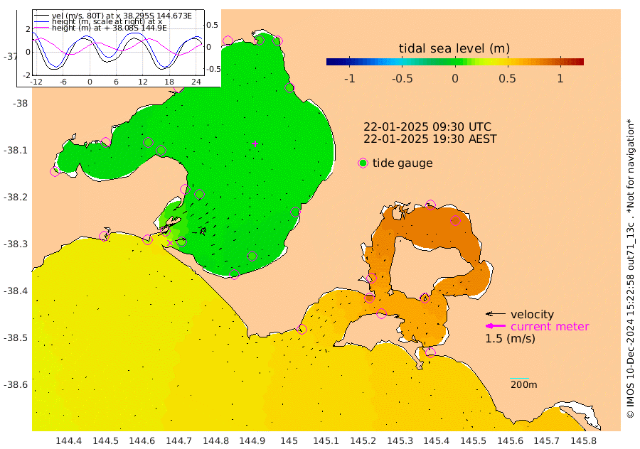 71cm San Remo 70cm Elizabeth Island 88cm Bouchier Channel 90cm Tooradin 65cm Cowes Jetty 70cm Western Port (Stony Point) 86cm Western Port (Sandy Point) 42cm Flinders Jetty 6cm Mornington 9cm Sandringham 6cm Rosebud Jetty 8cm Hovell Pile 13cm South Channel 21cm Point Lonsdale 13cm Queenscliff 9cm West Channel Pile 24cm Barwon Heads 8cm St Leonards 11cm Point Richards (Corio Bay) 10cm Point Richards Channel 12cm Geelong 10cm Werribee 10cm Altona 10cm Wilson Spit 10cm Melbourne (Williamstown) 10cm St Kilda