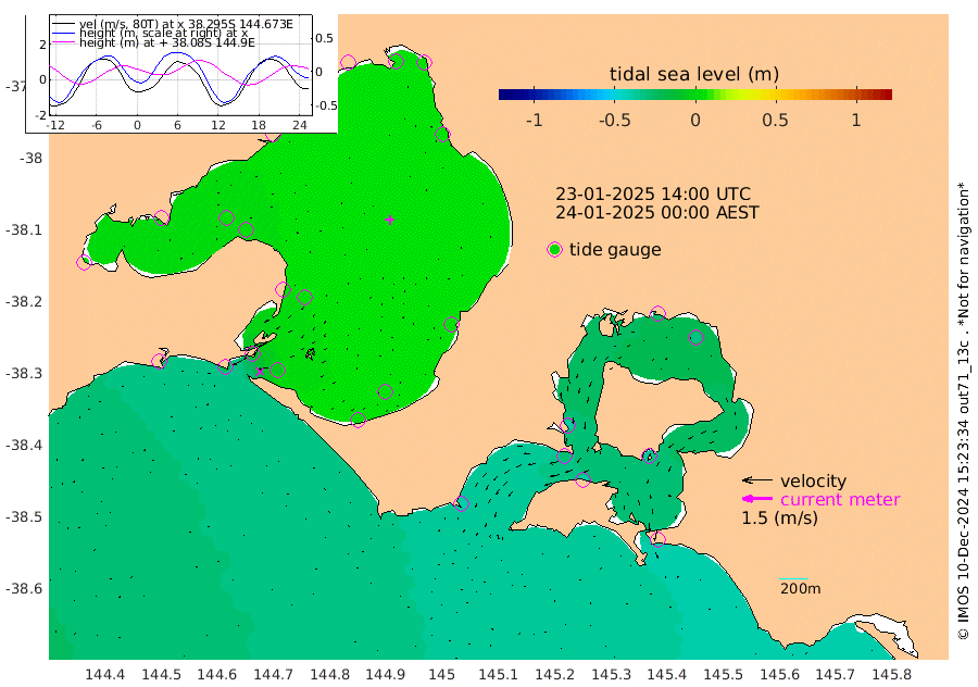 -41cm San Remo -37cm Elizabeth Island -34cm Bouchier Channel -26cm Tooradin -39cm Cowes Jetty -40cm Western Port (Stony Point) -29cm Western Port (Sandy Point) -40cm Flinders Jetty 5cm Mornington 4cm Sandringham 5cm Rosebud Jetty 5cm Hovell Pile -5cm South Channel -19cm Point Lonsdale -9cm Queenscliff 5cm West Channel Pile -28cm Barwon Heads 4cm St Leonards 6cm Point Richards (Corio Bay) 4cm Point Richards Channel 7cm Geelong 8cm Werribee 4cm Altona 5cm Wilson Spit 6cm Melbourne (Williamstown) 6cm St Kilda