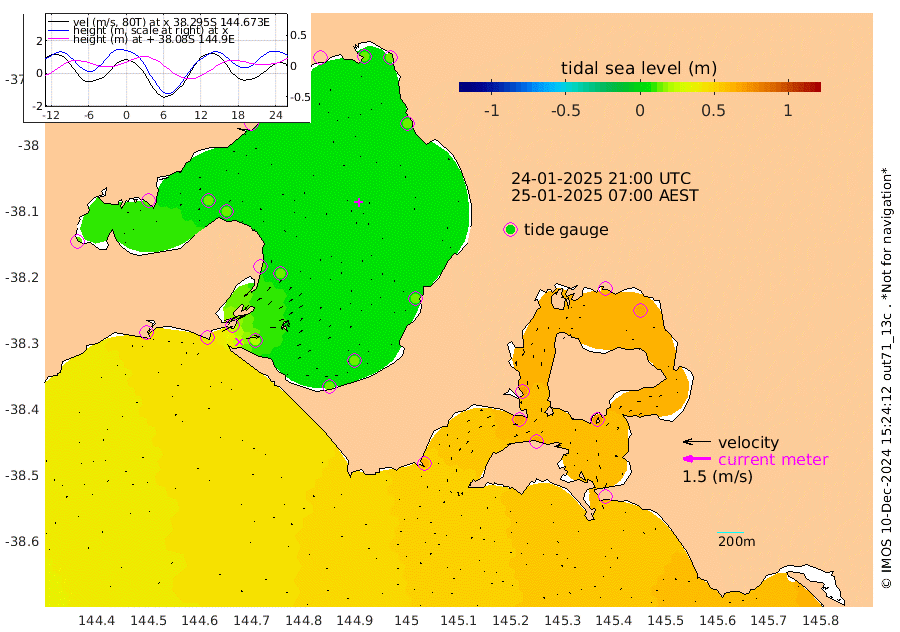 69cm San Remo 69cm Elizabeth Island 65cm Bouchier Channel 58cm Tooradin 66cm Cowes Jetty 69cm Western Port (Stony Point) 65cm Western Port (Sandy Point) 60cm Flinders Jetty 13cm Mornington 12cm Sandringham 13cm Rosebud Jetty 13cm Hovell Pile 22cm South Channel 35cm Point Lonsdale 27cm Queenscliff 13cm West Channel Pile 41cm Barwon Heads 14cm St Leonards 13cm Point Richards (Corio Bay) 14cm Point Richards Channel 11cm Geelong 10cm Werribee 12cm Altona 14cm Wilson Spit 12cm Melbourne (Williamstown) 13cm St Kilda