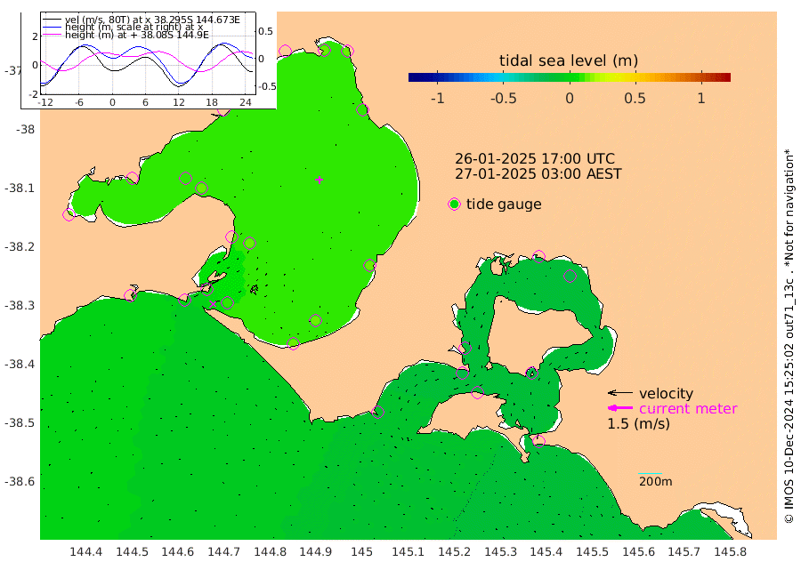 -18cm San Remo -17cm Elizabeth Island -18cm Bouchier Channel -17cm Tooradin -14cm Cowes Jetty -14cm Western Port (Stony Point) -18cm Western Port (Sandy Point) -9cm Flinders Jetty 12cm Mornington 11cm Sandringham 12cm Rosebud Jetty 11cm Hovell Pile 8cm South Channel 3cm Point Lonsdale 7cm Queenscliff 11cm West Channel Pile -4cm Barwon Heads 11cm St Leonards 12cm Point Richards (Corio Bay) 11cm Point Richards Channel 12cm Geelong 13cm Werribee 11cm Altona 12cm Wilson Spit 12cm Melbourne (Williamstown) 12cm St Kilda