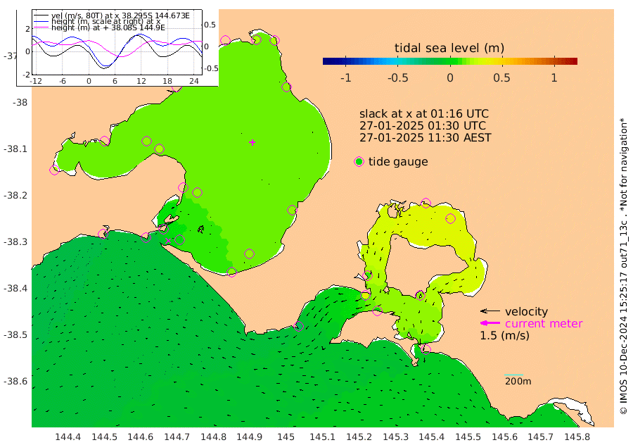 11cm San Remo 17cm Elizabeth Island 34cm Bouchier Channel 39cm Tooradin 1cm Cowes Jetty 8cm Western Port (Stony Point) 37cm Western Port (Sandy Point) -24cm Flinders Jetty 16cm Mornington 17cm Sandringham 15cm Rosebud Jetty 17cm Hovell Pile 3cm South Channel -13cm Point Lonsdale -2cm Queenscliff 17cm West Channel Pile -19cm Barwon Heads 15cm St Leonards 20cm Point Richards (Corio Bay) 18cm Point Richards Channel 21cm Geelong 16cm Werribee 18cm Altona 19cm Wilson Spit 19cm Melbourne (Williamstown) 19cm St Kilda