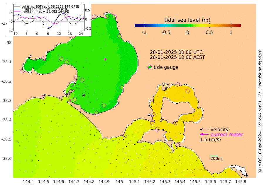 50cm San Remo 52cm Elizabeth Island 50cm Bouchier Channel 45cm Tooradin 41cm Cowes Jetty 46cm Western Port (Stony Point) 54cm Western Port (Sandy Point) 33cm Flinders Jetty 12cm Mornington 12cm Sandringham 14cm Rosebud Jetty 14cm Hovell Pile 17cm South Channel 19cm Point Lonsdale 18cm Queenscliff 14cm West Channel Pile 21cm Barwon Heads 12cm St Leonards 14cm Point Richards (Corio Bay) 13cm Point Richards Channel 13cm Geelong 10cm Werribee 12cm Altona 12cm Wilson Spit 13cm Melbourne (Williamstown) 14cm St Kilda