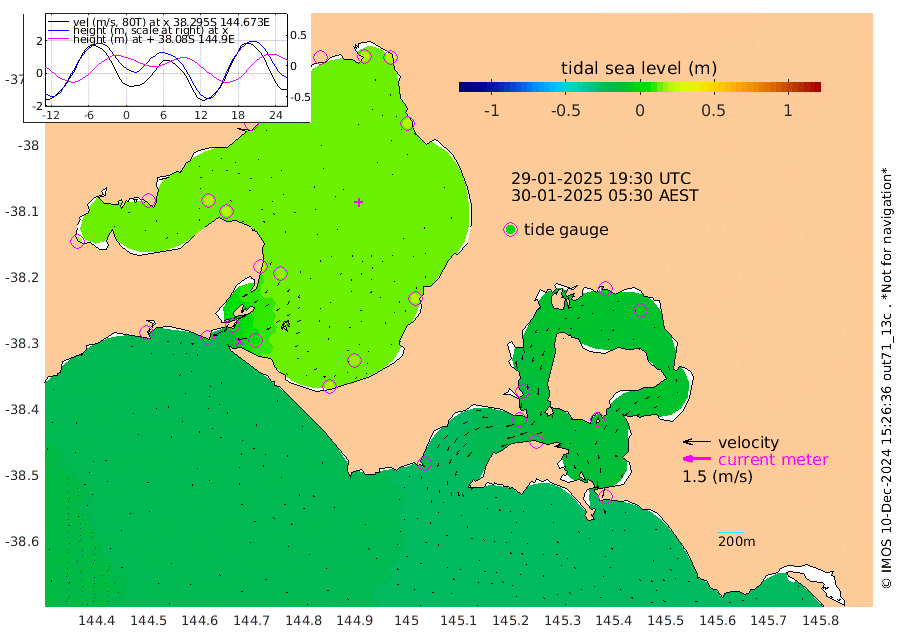 -19cm San Remo -11cm Elizabeth Island -5cm Bouchier Channel -1cm Tooradin -14cm Cowes Jetty -13cm Western Port (Stony Point) -7cm Western Port (Sandy Point) -20cm Flinders Jetty 20cm Mornington 22cm Sandringham 20cm Rosebud Jetty 18cm Hovell Pile 7cm South Channel -6cm Point Lonsdale 4cm Queenscliff 18cm West Channel Pile -19cm Barwon Heads 19cm St Leonards 20cm Point Richards (Corio Bay) 20cm Point Richards Channel 22cm Geelong 20cm Werribee 21cm Altona 21cm Wilson Spit 20cm Melbourne (Williamstown) 20cm St Kilda
