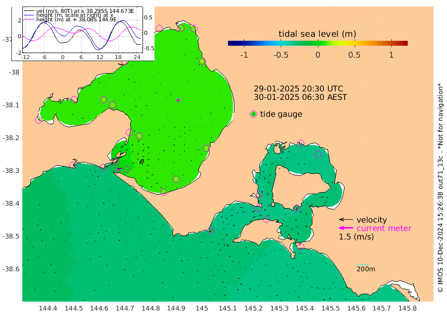 -35cm San Remo -27cm Elizabeth Island -31cm Bouchier Channel -27cm Tooradin -28cm Cowes Jetty -29cm Western Port (Stony Point) -33cm Western Port (Sandy Point) -22cm Flinders Jetty 15cm Mornington 15cm Sandringham 15cm Rosebud Jetty 13cm Hovell Pile 4cm South Channel -9cm Point Lonsdale 2cm Queenscliff 13cm West Channel Pile -22cm Barwon Heads 13cm St Leonards 13cm Point Richards (Corio Bay) 12cm Point Richards Channel 14cm Geelong 15cm Werribee 14cm Altona 14cm Wilson Spit 13cm Melbourne (Williamstown) 13cm St Kilda