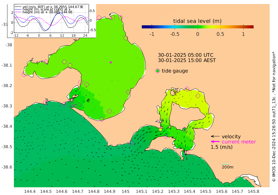 3cm San Remo 7cm Elizabeth Island 26cm Bouchier Channel 33cm Tooradin -4cm Cowes Jetty 1cm Western Port (Stony Point) 31cm Western Port (Sandy Point) -33cm Flinders Jetty 14cm Mornington 16cm Sandringham 13cm Rosebud Jetty 14cm Hovell Pile 0cm South Channel -18cm Point Lonsdale -6cm Queenscliff 15cm West Channel Pile -26cm Barwon Heads 14cm St Leonards 18cm Point Richards (Corio Bay) 17cm Point Richards Channel 21cm Geelong 16cm Werribee 17cm Altona 18cm Wilson Spit 18cm Melbourne (Williamstown) 18cm St Kilda