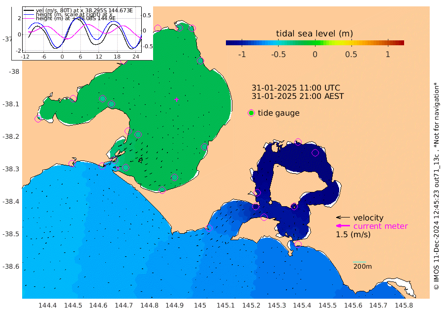-105cm San Remo -107cm Elizabeth Island -123cm Bouchier Channel -116cm Tooradin -94cm Cowes Jetty -100cm Western Port (Stony Point) -123cm Western Port (Sandy Point) -64cm Flinders Jetty -30cm Mornington -34cm Sandringham -31cm Rosebud Jetty -30cm Hovell Pile -34cm South Channel -43cm Point Lonsdale -36cm Queenscliff -31cm West Channel Pile -44cm Barwon Heads -31cm St Leonards -35cm Point Richards (Corio Bay) -34cm Point Richards Channel -35cm Geelong -25cm Werribee -34cm Altona -34cm Wilson Spit -32cm Melbourne (Williamstown) -33cm St Kilda