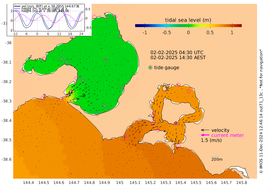 95cm San Remo 84cm Elizabeth Island 77cm Bouchier Channel 63cm Tooradin 87cm Cowes Jetty 87cm Western Port (Stony Point) 76cm Western Port (Sandy Point) 89cm Flinders Jetty -1cm Mornington 1cm Sandringham 3cm Rosebud Jetty 1cm Hovell Pile 23cm South Channel 52cm Point Lonsdale 31cm Queenscliff 2cm West Channel Pile 64cm Barwon Heads 2cm St Leonards 1cm Point Richards (Corio Bay) 1cm Point Richards Channel -2cm Geelong -2cm Werribee 1cm Altona -1cm Wilson Spit 0cm Melbourne (Williamstown) 1cm St Kilda
