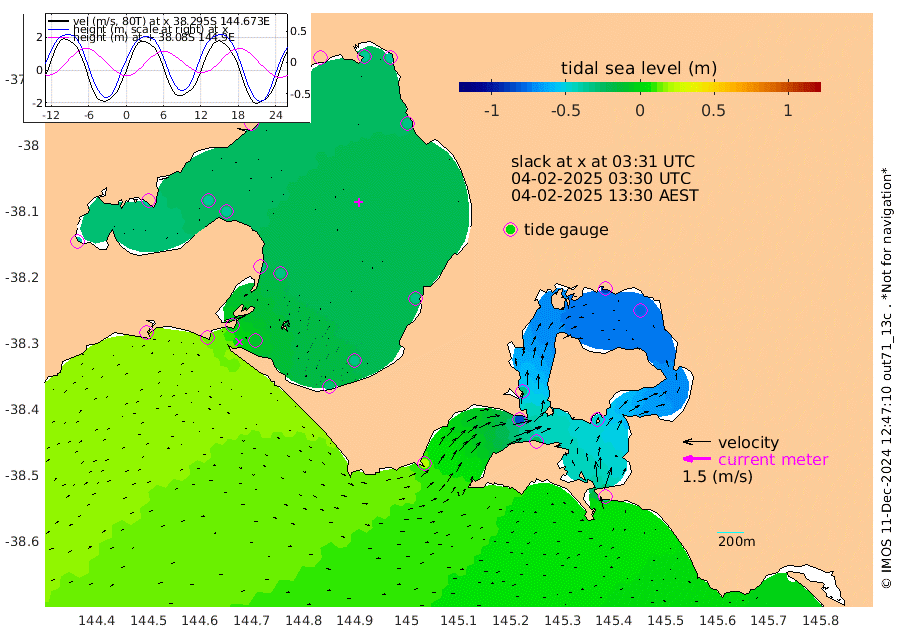 -34cm San Remo -49cm Elizabeth Island -75cm Bouchier Channel -87cm Tooradin -24cm Cowes Jetty -33cm Western Port (Stony Point) -84cm Western Port (Sandy Point) 22cm Flinders Jetty -32cm Mornington -33cm Sandringham -29cm Rosebud Jetty -30cm Hovell Pile -10cm South Channel 14cm Point Lonsdale -2cm Queenscliff -31cm West Channel Pile 24cm Barwon Heads -32cm St Leonards -36cm Point Richards (Corio Bay) -35cm Point Richards Channel -40cm Geelong -30cm Werribee -34cm Altona -39cm Wilson Spit -34cm Melbourne (Williamstown) -36cm St Kilda