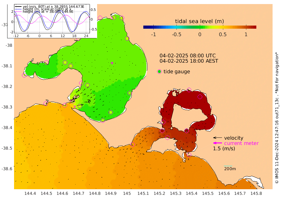 115cm San Remo 119cm Elizabeth Island 136cm Bouchier Channel 135cm Tooradin 104cm Cowes Jetty 109cm Western Port (Stony Point) 138cm Western Port (Sandy Point) 68cm Flinders Jetty 19cm Mornington 23cm Sandringham 19cm Rosebud Jetty 19cm Hovell Pile 25cm South Channel 36cm Point Lonsdale 26cm Queenscliff 20cm West Channel Pile 38cm Barwon Heads 21cm St Leonards 24cm Point Richards (Corio Bay) 23cm Point Richards Channel 25cm Geelong 17cm Werribee 23cm Altona 24cm Wilson Spit 22cm Melbourne (Williamstown) 23cm St Kilda