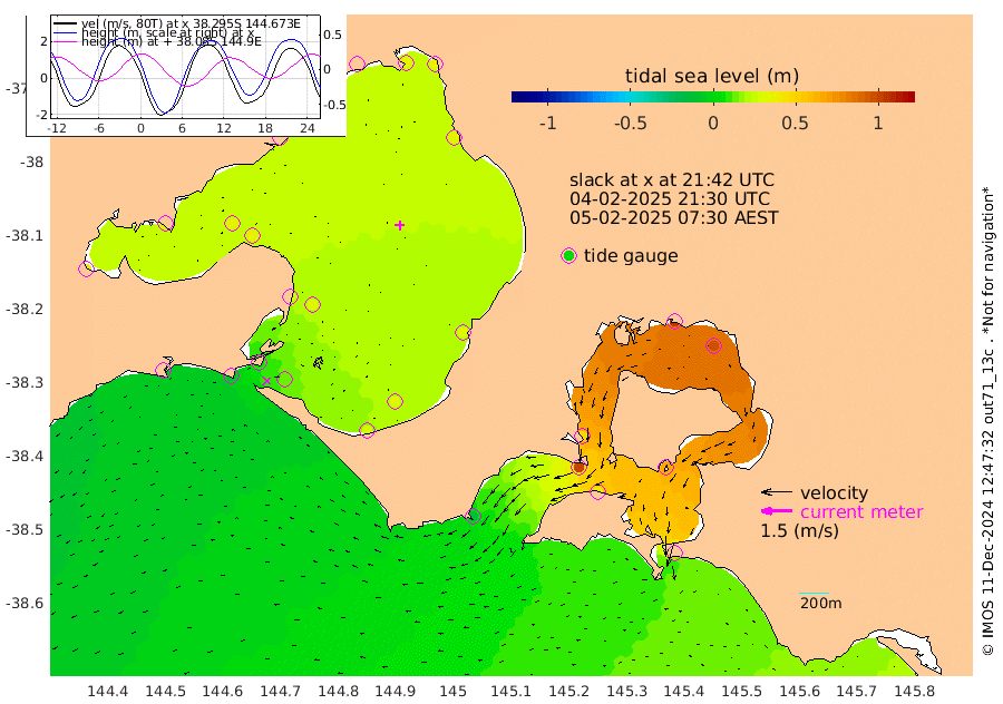 49cm San Remo 65cm Elizabeth Island 97cm Bouchier Channel 104cm Tooradin 39cm Cowes Jetty 48cm Western Port (Stony Point) 99cm Western Port (Sandy Point) -11cm Flinders Jetty 33cm Mornington 35cm Sandringham 29cm Rosebud Jetty 31cm Hovell Pile 11cm South Channel -9cm Point Lonsdale 4cm Queenscliff 31cm West Channel Pile -16cm Barwon Heads 32cm St Leonards 37cm Point Richards (Corio Bay) 37cm Point Richards Channel 40cm Geelong 30cm Werribee 35cm Altona 40cm Wilson Spit 35cm Melbourne (Williamstown) 36cm St Kilda