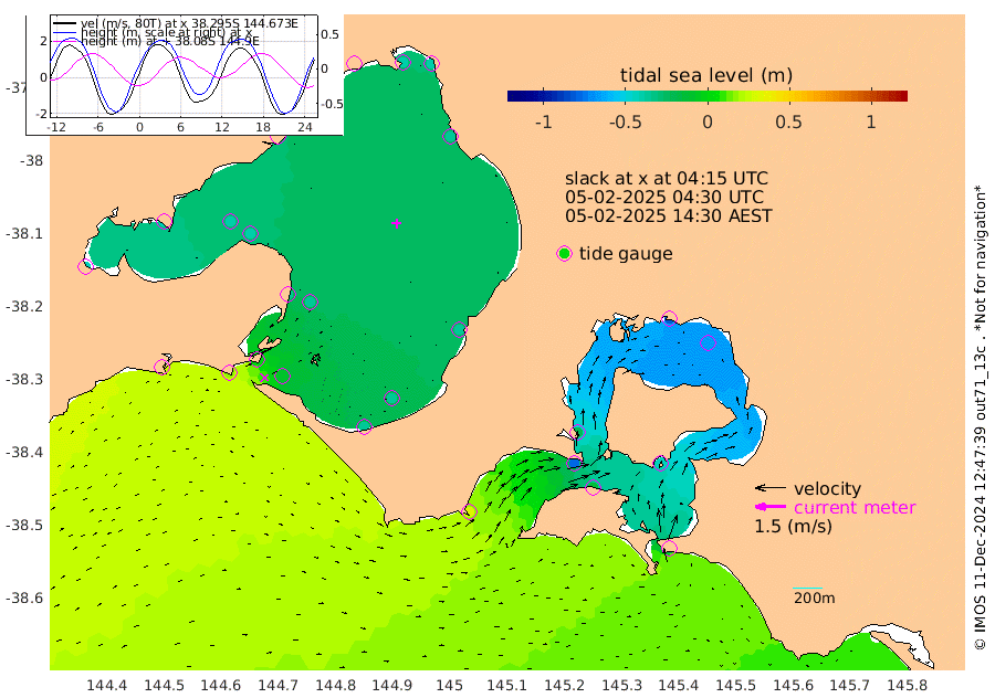 -24cm San Remo -41cm Elizabeth Island -67cm Bouchier Channel -80cm Tooradin -12cm Cowes Jetty -22cm Western Port (Stony Point) -77cm Western Port (Sandy Point) 33cm Flinders Jetty -36cm Mornington -37cm Sandringham -34cm Rosebud Jetty -34cm Hovell Pile -10cm South Channel 19cm Point Lonsdale -1cm Queenscliff -34cm West Channel Pile 32cm Barwon Heads -35cm St Leonards -40cm Point Richards (Corio Bay) -39cm Point Richards Channel -44cm Geelong -33cm Werribee -38cm Altona -42cm Wilson Spit -39cm Melbourne (Williamstown) -40cm St Kilda