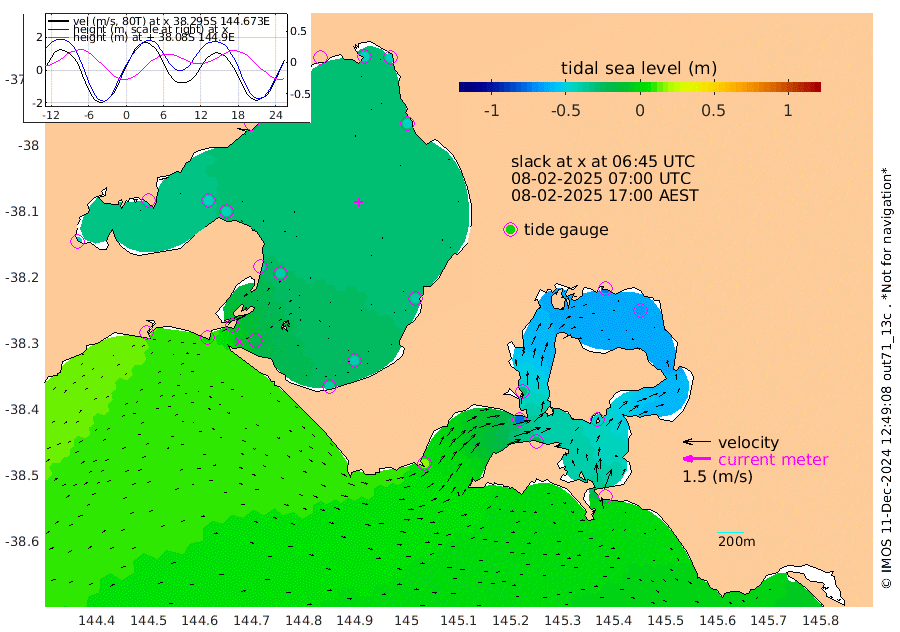 -31cm San Remo -48cm Elizabeth Island -66cm Bouchier Channel -73cm Tooradin -18cm Cowes Jetty -28cm Western Port (Stony Point) -76cm Western Port (Sandy Point) 19cm Flinders Jetty -40cm Mornington -41cm Sandringham -40cm Rosebud Jetty -39cm Hovell Pile -19cm South Channel 6cm Point Lonsdale -11cm Queenscliff -39cm West Channel Pile 20cm Barwon Heads -38cm St Leonards -44cm Point Richards (Corio Bay) -42cm Point Richards Channel -47cm Geelong -35cm Werribee -41cm Altona -45cm Wilson Spit -42cm Melbourne (Williamstown) -43cm St Kilda
