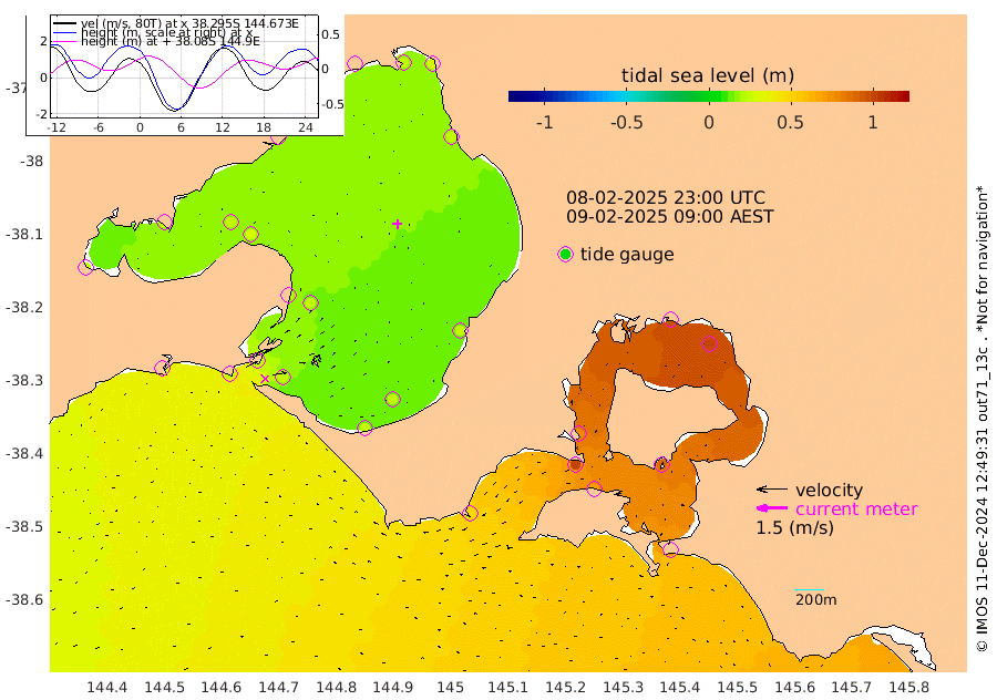 83cm San Remo 89cm Elizabeth Island 99cm Bouchier Channel 97cm Tooradin 71cm Cowes Jetty 79cm Western Port (Stony Point) 101cm Western Port (Sandy Point) 46cm Flinders Jetty 24cm Mornington 26cm Sandringham 25cm Rosebud Jetty 24cm Hovell Pile 23cm South Channel 24cm Point Lonsdale 23cm Queenscliff 25cm West Channel Pile 25cm Barwon Heads 24cm St Leonards 27cm Point Richards (Corio Bay) 26cm Point Richards Channel 27cm Geelong 23cm Werribee 25cm Altona 28cm Wilson Spit 26cm Melbourne (Williamstown) 26cm St Kilda