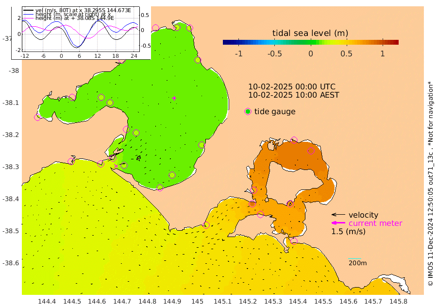 70cm San Remo 75cm Elizabeth Island 83cm Bouchier Channel 81cm Tooradin 58cm Cowes Jetty 65cm Western Port (Stony Point) 85cm Western Port (Sandy Point) 36cm Flinders Jetty 21cm Mornington 23cm Sandringham 22cm Rosebud Jetty 22cm Hovell Pile 20cm South Channel 19cm Point Lonsdale 20cm Queenscliff 22cm West Channel Pile 20cm Barwon Heads 21cm St Leonards 24cm Point Richards (Corio Bay) 22cm Point Richards Channel 24cm Geelong 20cm Werribee 22cm Altona 24cm Wilson Spit 23cm Melbourne (Williamstown) 23cm St Kilda