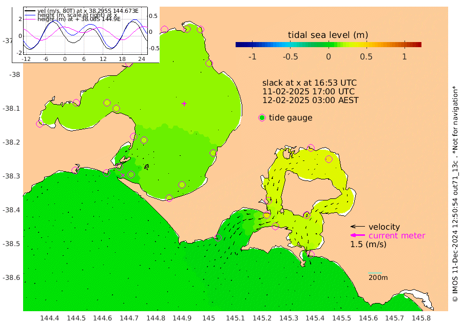 20cm San Remo 27cm Elizabeth Island 42cm Bouchier Channel 42cm Tooradin 20cm Cowes Jetty 22cm Western Port (Stony Point) 42cm Western Port (Sandy Point) 0cm Flinders Jetty 22cm Mornington 21cm Sandringham 20cm Rosebud Jetty 20cm Hovell Pile 13cm South Channel 7cm Point Lonsdale 10cm Queenscliff 20cm West Channel Pile 1cm Barwon Heads 21cm St Leonards 23cm Point Richards (Corio Bay) 23cm Point Richards Channel 24cm Geelong 18cm Werribee 22cm Altona 24cm Wilson Spit 22cm Melbourne (Williamstown) 23cm St Kilda