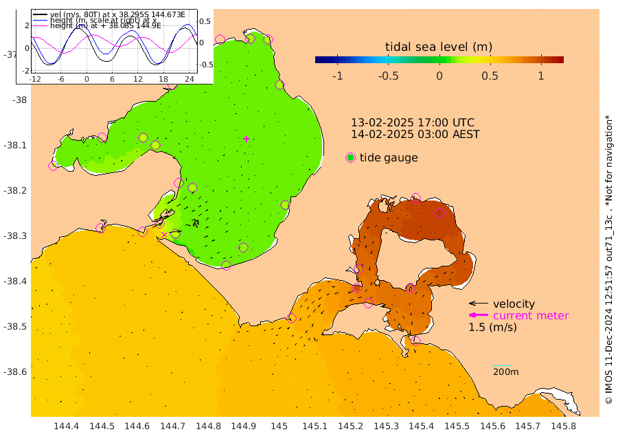 83cm San Remo 82cm Elizabeth Island 102cm Bouchier Channel 96cm Tooradin 78cm Cowes Jetty 82cm Western Port (Stony Point) 97cm Western Port (Sandy Point) 54cm Flinders Jetty 20cm Mornington 20cm Sandringham 18cm Rosebud Jetty 18cm Hovell Pile 23cm South Channel 35cm Point Lonsdale 25cm Queenscliff 19cm West Channel Pile 41cm Barwon Heads 21cm St Leonards 23cm Point Richards (Corio Bay) 24cm Point Richards Channel 23cm Geelong 18cm Werribee 21cm Altona 24cm Wilson Spit 21cm Melbourne (Williamstown) 22cm St Kilda
