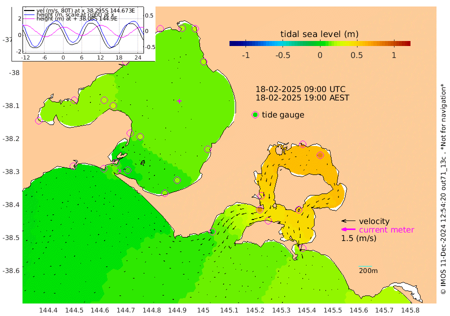 44cm San Remo 53cm Elizabeth Island 76cm Bouchier Channel 85cm Tooradin 40cm Cowes Jetty 44cm Western Port (Stony Point) 76cm Western Port (Sandy Point) 5cm Flinders Jetty 18cm Mornington 21cm Sandringham 17cm Rosebud Jetty 18cm Hovell Pile 10cm South Channel 0cm Point Lonsdale 5cm Queenscliff 19cm West Channel Pile -7cm Barwon Heads 19cm St Leonards 23cm Point Richards (Corio Bay) 21cm Point Richards Channel 26cm Geelong 23cm Werribee 21cm Altona 23cm Wilson Spit 22cm Melbourne (Williamstown) 23cm St Kilda