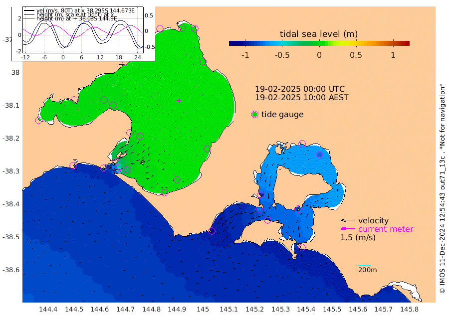 -98cm San Remo -83cm Elizabeth Island -77cm Bouchier Channel -65cm Tooradin -97cm Cowes Jetty -96cm Western Port (Stony Point) -73cm Western Port (Sandy Point) -101cm Flinders Jetty 4cm Mornington 5cm Sandringham 4cm Rosebud Jetty 2cm Hovell Pile -25cm South Channel -61cm Point Lonsdale -35cm Queenscliff 1cm West Channel Pile -76cm Barwon Heads 0cm St Leonards 3cm Point Richards (Corio Bay) 2cm Point Richards Channel 6cm Geelong 3cm Werribee 3cm Altona 4cm Wilson Spit 4cm Melbourne (Williamstown) 3cm St Kilda