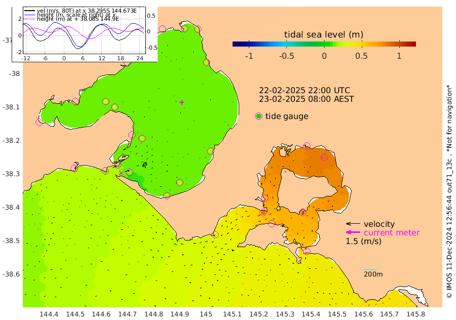 63cm San Remo 70cm Elizabeth Island 83cm Bouchier Channel 84cm Tooradin 54cm Cowes Jetty 61cm Western Port (Stony Point) 84cm Western Port (Sandy Point) 27cm Flinders Jetty 21cm Mornington 22cm Sandringham 20cm Rosebud Jetty 21cm Hovell Pile 17cm South Channel 13cm Point Lonsdale 16cm Queenscliff 21cm West Channel Pile 14cm Barwon Heads 21cm St Leonards 24cm Point Richards (Corio Bay) 23cm Point Richards Channel 24cm Geelong 19cm Werribee 22cm Altona 24cm Wilson Spit 22cm Melbourne (Williamstown) 23cm St Kilda