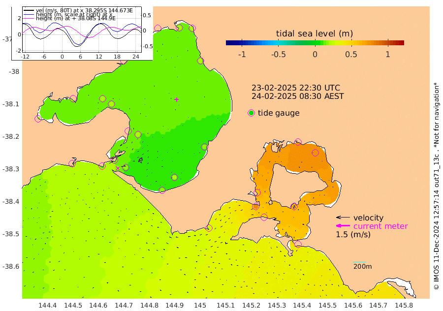 60cm San Remo 66cm Elizabeth Island 74cm Bouchier Channel 74cm Tooradin 49cm Cowes Jetty 57cm Western Port (Stony Point) 77cm Western Port (Sandy Point) 27cm Flinders Jetty 18cm Mornington 19cm Sandringham 18cm Rosebud Jetty 19cm Hovell Pile 17cm South Channel 14cm Point Lonsdale 16cm Queenscliff 19cm West Channel Pile 15cm Barwon Heads 18cm St Leonards 21cm Point Richards (Corio Bay) 20cm Point Richards Channel 21cm Geelong 16cm Werribee 19cm Altona 20cm Wilson Spit 20cm Melbourne (Williamstown) 20cm St Kilda