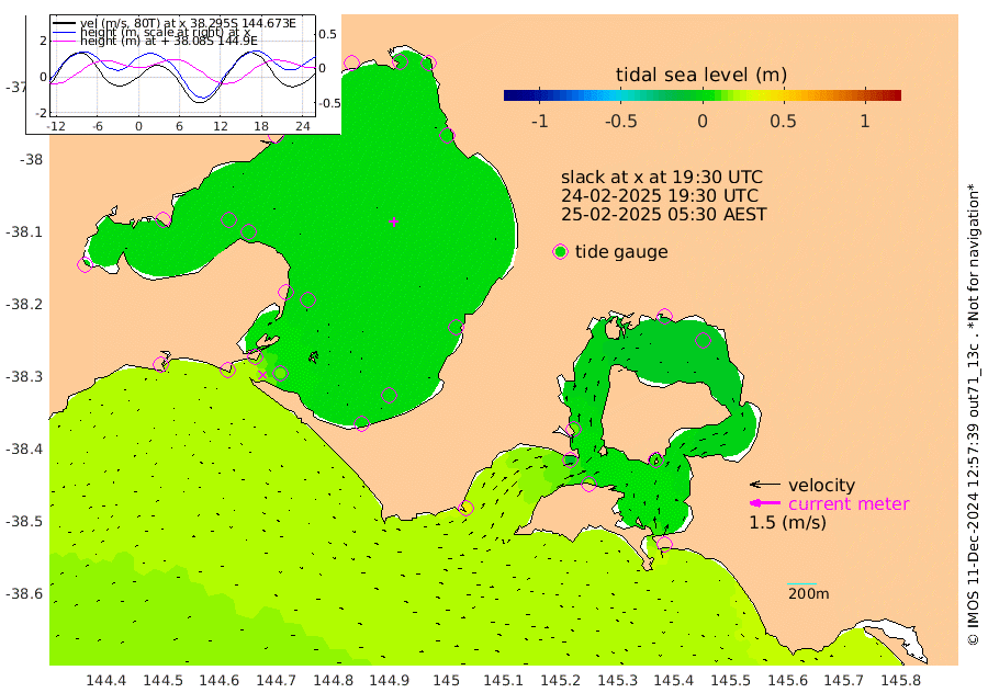 12cm San Remo 11cm Elizabeth Island -7cm Bouchier Channel -14cm Tooradin 18cm Cowes Jetty 14cm Western Port (Stony Point) -9cm Western Port (Sandy Point) 34cm Flinders Jetty 5cm Mornington 4cm Sandringham 7cm Rosebud Jetty 5cm Hovell Pile 13cm South Channel 21cm Point Lonsdale 17cm Queenscliff 5cm West Channel Pile 20cm Barwon Heads 5cm St Leonards 3cm Point Richards (Corio Bay) 3cm Point Richards Channel 1cm Geelong 5cm Werribee 3cm Altona 2cm Wilson Spit 3cm Melbourne (Williamstown) 3cm St Kilda