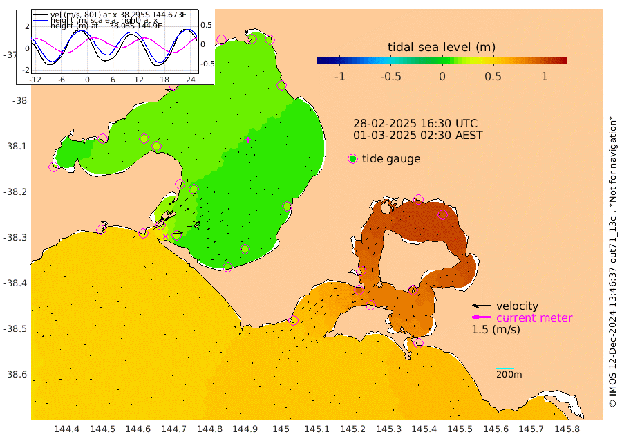 77cm San Remo 76cm Elizabeth Island 96cm Bouchier Channel 91cm Tooradin 71cm Cowes Jetty 75cm Western Port (Stony Point) 93cm Western Port (Sandy Point) 45cm Flinders Jetty 17cm Mornington 17cm Sandringham 14cm Rosebud Jetty 15cm Hovell Pile 19cm South Channel 30cm Point Lonsdale 21cm Queenscliff 16cm West Channel Pile 35cm Barwon Heads 18cm St Leonards 19cm Point Richards (Corio Bay) 21cm Point Richards Channel 19cm Geelong 12cm Werribee 19cm Altona 21cm Wilson Spit 17cm Melbourne (Williamstown) 18cm St Kilda