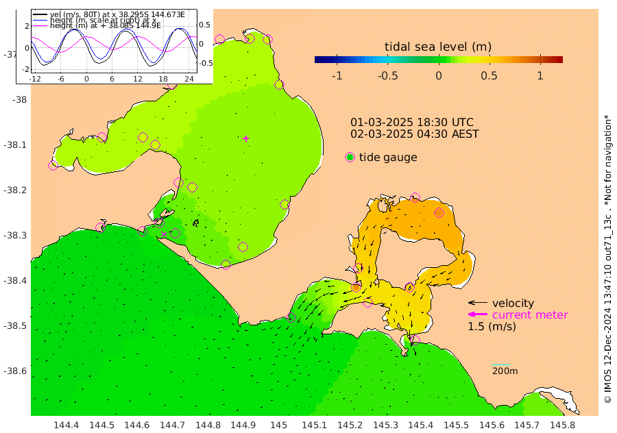37cm San Remo 47cm Elizabeth Island 74cm Bouchier Channel 78cm Tooradin 35cm Cowes Jetty 38cm Western Port (Stony Point) 71cm Western Port (Sandy Point) -3cm Flinders Jetty 26cm Mornington 27cm Sandringham 21cm Rosebud Jetty 22cm Hovell Pile 11cm South Channel 0cm Point Lonsdale 6cm Queenscliff 23cm West Channel Pile -6cm Barwon Heads 25cm St Leonards 28cm Point Richards (Corio Bay) 29cm Point Richards Channel 30cm Geelong 22cm Werribee 28cm Altona 30cm Wilson Spit 26cm Melbourne (Williamstown) 27cm St Kilda