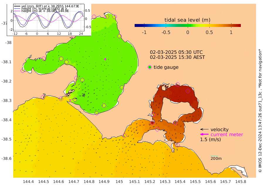 91cm San Remo 92cm Elizabeth Island 107cm Bouchier Channel 106cm Tooradin 80cm Cowes Jetty 84cm Western Port (Stony Point) 112cm Western Port (Sandy Point) 48cm Flinders Jetty 20cm Mornington 23cm Sandringham 21cm Rosebud Jetty 21cm Hovell Pile 23cm South Channel 29cm Point Lonsdale 23cm Queenscliff 22cm West Channel Pile 28cm Barwon Heads 22cm St Leonards 25cm Point Richards (Corio Bay) 24cm Point Richards Channel 26cm Geelong 19cm Werribee 24cm Altona 25cm Wilson Spit 24cm Melbourne (Williamstown) 25cm St Kilda