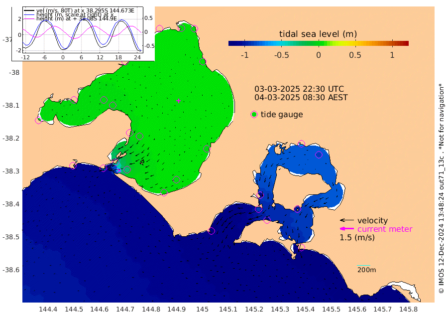 -118cm San Remo -100cm Elizabeth Island -87cm Bouchier Channel -70cm Tooradin -113cm Cowes Jetty -111cm Western Port (Stony Point) -86cm Western Port (Sandy Point) -122cm Flinders Jetty 4cm Mornington 4cm Sandringham 1cm Rosebud Jetty 1cm Hovell Pile -30cm South Channel -72cm Point Lonsdale -42cm Queenscliff 0cm West Channel Pile -90cm Barwon Heads -1cm St Leonards 3cm Point Richards (Corio Bay) 2cm Point Richards Channel 7cm Geelong 4cm Werribee 3cm Altona 3cm Wilson Spit 3cm Melbourne (Williamstown) 2cm St Kilda