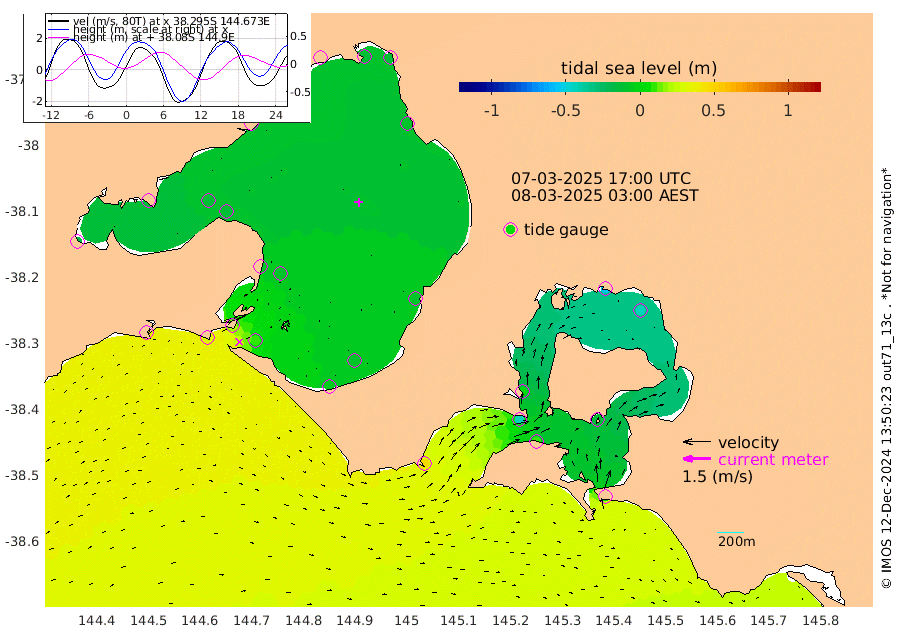 1cm San Remo -13cm Elizabeth Island -42cm Bouchier Channel -53cm Tooradin 9cm Cowes Jetty 2cm Western Port (Stony Point) -45cm Western Port (Sandy Point) 47cm Flinders Jetty -9cm Mornington -11cm Sandringham -6cm Rosebud Jetty -8cm Hovell Pile 11cm South Channel 33cm Point Lonsdale 20cm Queenscliff -8cm West Channel Pile 38cm Barwon Heads -8cm St Leonards -13cm Point Richards (Corio Bay) -12cm Point Richards Channel -17cm Geelong -8cm Werribee -12cm Altona -14cm Wilson Spit -12cm Melbourne (Williamstown) -12cm St Kilda