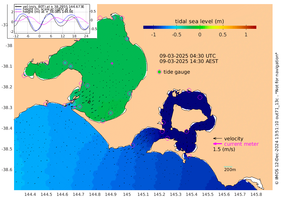 -123cm San Remo -132cm Elizabeth Island -148cm Bouchier Channel -144cm Tooradin -112cm Cowes Jetty -121cm Western Port (Stony Point) -147cm Western Port (Sandy Point) -79cm Flinders Jetty -32cm Mornington -35cm Sandringham -32cm Rosebud Jetty -32cm Hovell Pile -37cm South Channel -46cm Point Lonsdale -39cm Queenscliff -33cm West Channel Pile -48cm Barwon Heads -33cm St Leonards -37cm Point Richards (Corio Bay) -35cm Point Richards Channel -37cm Geelong -29cm Werribee -34cm Altona -36cm Wilson Spit -34cm Melbourne (Williamstown) -35cm St Kilda
