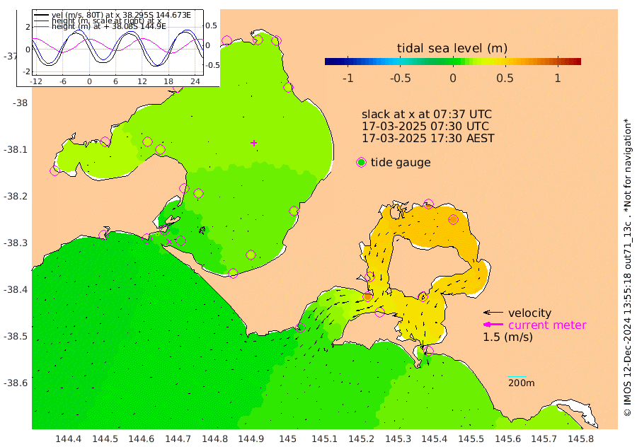 41cm San Remo 50cm Elizabeth Island 71cm Bouchier Channel 80cm Tooradin 39cm Cowes Jetty 41cm Western Port (Stony Point) 71cm Western Port (Sandy Point) 5cm Flinders Jetty 22cm Mornington 23cm Sandringham 20cm Rosebud Jetty 21cm Hovell Pile 11cm South Channel 1cm Point Lonsdale 7cm Queenscliff 21cm West Channel Pile -7cm Barwon Heads 22cm St Leonards 26cm Point Richards (Corio Bay) 24cm Point Richards Channel 28cm Geelong 25cm Werribee 24cm Altona 25cm Wilson Spit 24cm Melbourne (Williamstown) 25cm St Kilda