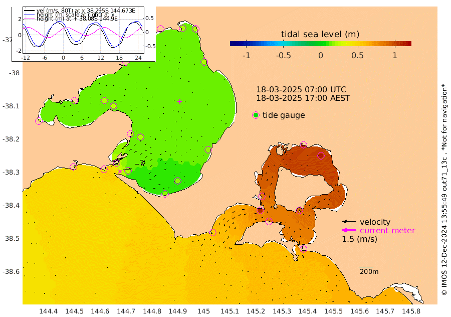87cm San Remo 88cm Elizabeth Island 110cm Bouchier Channel 111cm Tooradin 83cm Cowes Jetty 86cm Western Port (Stony Point) 106cm Western Port (Sandy Point) 52cm Flinders Jetty 17cm Mornington 20cm Sandringham 16cm Rosebud Jetty 18cm Hovell Pile 21cm South Channel 29cm Point Lonsdale 22cm Queenscliff 19cm West Channel Pile 30cm Barwon Heads 19cm St Leonards 23cm Point Richards (Corio Bay) 21cm Point Richards Channel 24cm Geelong 21cm Werribee 21cm Altona 22cm Wilson Spit 21cm Melbourne (Williamstown) 22cm St Kilda