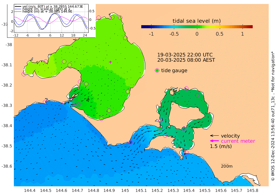 -49cm San Remo -31cm Elizabeth Island -9cm Bouchier Channel 7cm Tooradin -51cm Cowes Jetty -46cm Western Port (Stony Point) -7cm Western Port (Sandy Point) -80cm Flinders Jetty 17cm Mornington 18cm Sandringham 14cm Rosebud Jetty 14cm Hovell Pile -15cm South Channel -50cm Point Lonsdale -26cm Queenscliff 13cm West Channel Pile -64cm Barwon Heads 14cm St Leonards 18cm Point Richards (Corio Bay) 17cm Point Richards Channel 22cm Geelong 17cm Werribee 17cm Altona 20cm Wilson Spit 17cm Melbourne (Williamstown) 17cm St Kilda