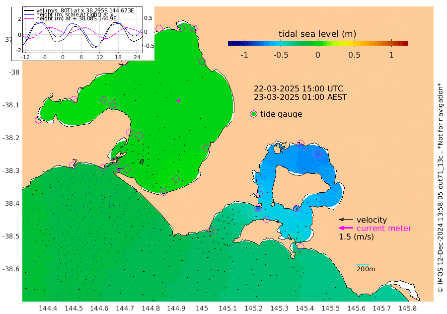 -53cm San Remo -57cm Elizabeth Island -75cm Bouchier Channel -79cm Tooradin -47cm Cowes Jetty -51cm Western Port (Stony Point) -73cm Western Port (Sandy Point) -19cm Flinders Jetty -2cm Mornington -5cm Sandringham 0cm Rosebud Jetty -2cm Hovell Pile -1cm South Channel -4cm Point Lonsdale 0cm Queenscliff -2cm West Channel Pile -11cm Barwon Heads -3cm St Leonards -5cm Point Richards (Corio Bay) -5cm Point Richards Channel -6cm Geelong -1cm Werribee -5cm Altona -6cm Wilson Spit -3cm Melbourne (Williamstown) -4cm St Kilda