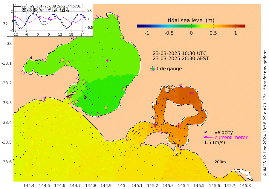 70cm San Remo 76cm Elizabeth Island 98cm Bouchier Channel 100cm Tooradin 60cm Cowes Jetty 69cm Western Port (Stony Point) 98cm Western Port (Sandy Point) 31cm Flinders Jetty 15cm Mornington 19cm Sandringham 15cm Rosebud Jetty 16cm Hovell Pile 15cm South Channel 18cm Point Lonsdale 14cm Queenscliff 17cm West Channel Pile 19cm Barwon Heads 17cm St Leonards 20cm Point Richards (Corio Bay) 19cm Point Richards Channel 21cm Geelong 14cm Werribee 19cm Altona 20cm Wilson Spit 18cm Melbourne (Williamstown) 19cm St Kilda