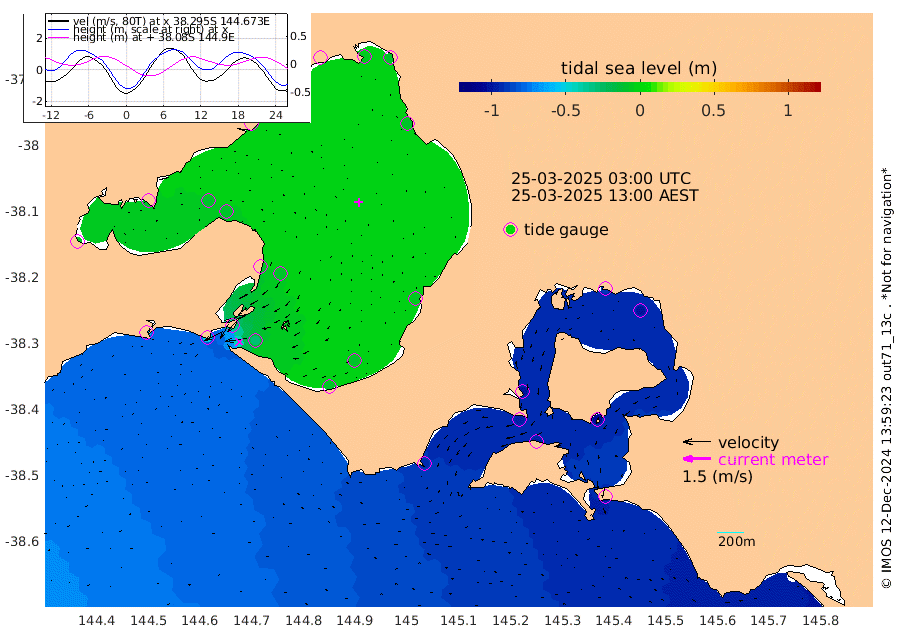 -102cm San Remo -101cm Elizabeth Island -98cm Bouchier Channel -87cm Tooradin -97cm Cowes Jetty -100cm Western Port (Stony Point) -95cm Western Port (Sandy Point) -93cm Flinders Jetty -7cm Mornington -9cm Sandringham -9cm Rosebud Jetty -8cm Hovell Pile -27cm South Channel -52cm Point Lonsdale -34cm Queenscliff -9cm West Channel Pile -62cm Barwon Heads -10cm St Leonards -9cm Point Richards (Corio Bay) -9cm Point Richards Channel -6cm Geelong -3cm Werribee -9cm Altona -8cm Wilson Spit -7cm Melbourne (Williamstown) -8cm St Kilda