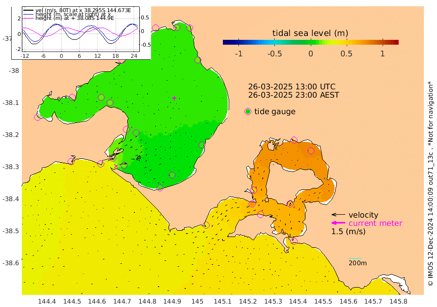 56cm San Remo 57cm Elizabeth Island 74cm Bouchier Channel 71cm Tooradin 47cm Cowes Jetty 54cm Western Port (Stony Point) 74cm Western Port (Sandy Point) 28cm Flinders Jetty 11cm Mornington 12cm Sandringham 10cm Rosebud Jetty 11cm Hovell Pile 13cm South Channel 19cm Point Lonsdale 13cm Queenscliff 11cm West Channel Pile 23cm Barwon Heads 11cm St Leonards 13cm Point Richards (Corio Bay) 14cm Point Richards Channel 14cm Geelong 6cm Werribee 13cm Altona 14cm Wilson Spit 12cm Melbourne (Williamstown) 13cm St Kilda