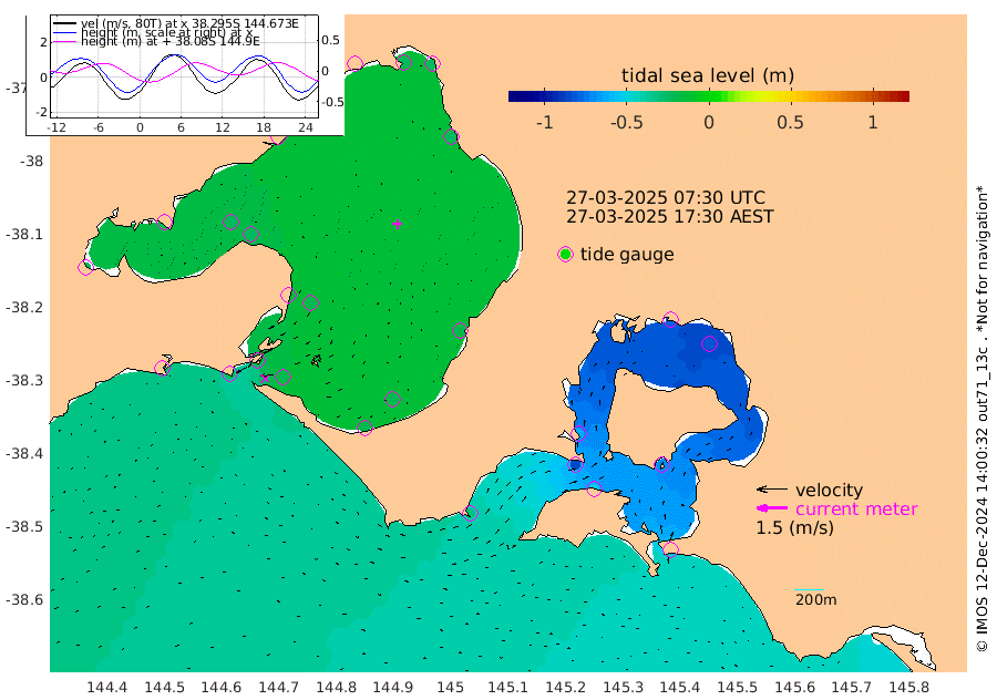 -65cm San Remo -68cm Elizabeth Island -81cm Bouchier Channel -77cm Tooradin -52cm Cowes Jetty -61cm Western Port (Stony Point) -83cm Western Port (Sandy Point) -32cm Flinders Jetty -20cm Mornington -23cm Sandringham -22cm Rosebud Jetty -21cm Hovell Pile -21cm South Channel -23cm Point Lonsdale -21cm Queenscliff -22cm West Channel Pile -23cm Barwon Heads -20cm St Leonards -24cm Point Richards (Corio Bay) -23cm Point Richards Channel -24cm Geelong -16cm Werribee -23cm Altona -23cm Wilson Spit -23cm Melbourne (Williamstown) -23cm St Kilda