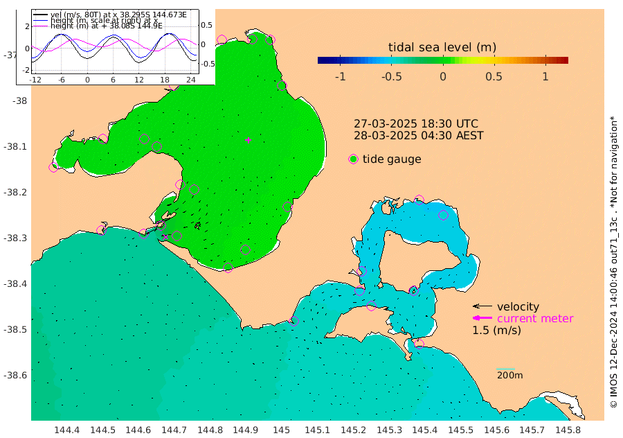 -50cm San Remo -45cm Elizabeth Island -45cm Bouchier Channel -41cm Tooradin -40cm Cowes Jetty -45cm Western Port (Stony Point) -50cm Western Port (Sandy Point) -35cm Flinders Jetty 4cm Mornington 5cm Sandringham 3cm Rosebud Jetty 2cm Hovell Pile -6cm South Channel -18cm Point Lonsdale -9cm Queenscliff 2cm West Channel Pile -30cm Barwon Heads 2cm St Leonards 3cm Point Richards (Corio Bay) 2cm Point Richards Channel 3cm Geelong 5cm Werribee 4cm Altona 2cm Wilson Spit 3cm Melbourne (Williamstown) 2cm St Kilda