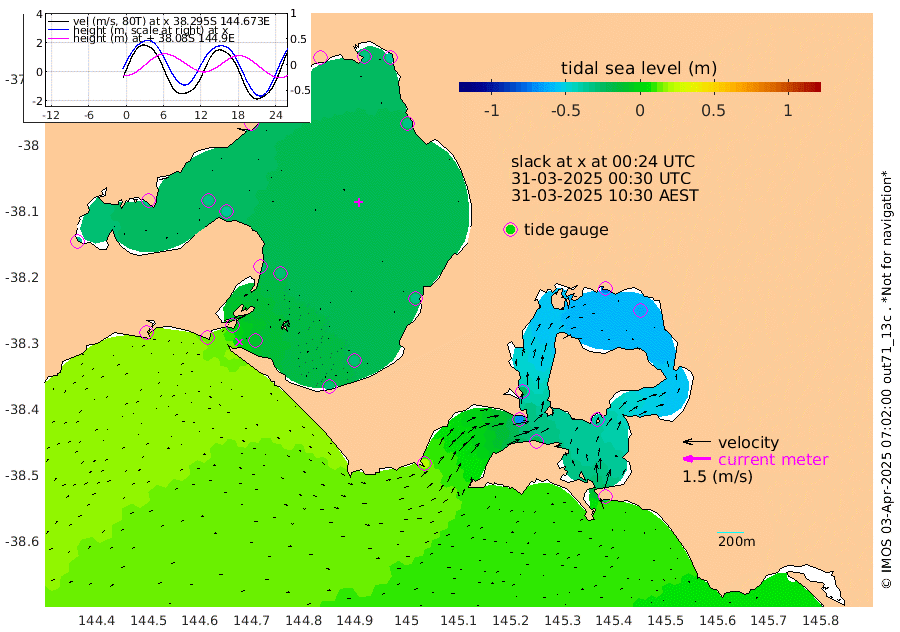 -27cm San Remo -39cm Elizabeth Island -63cm Bouchier Channel -73cm Tooradin -20cm Cowes Jetty -25cm Western Port (Stony Point) -69cm Western Port (Sandy Point) 22cm Flinders Jetty -31cm Mornington -31cm Sandringham -28cm Rosebud Jetty -29cm Hovell Pile -10cm South Channel 12cm Point Lonsdale -3cm Queenscliff -29cm West Channel Pile 25cm Barwon Heads -30cm St Leonards -34cm Point Richards (Corio Bay) -34cm Point Richards Channel -37cm Geelong -30cm Werribee -32cm Altona -36cm Wilson Spit -33cm Melbourne (Williamstown) -34cm St Kilda