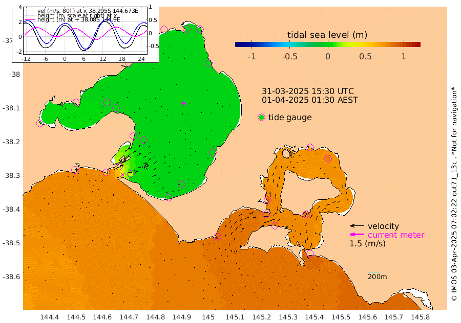 95cm San Remo 82cm Elizabeth Island 80cm Bouchier Channel 64cm Tooradin 89cm Cowes Jetty 89cm Western Port (Stony Point) 77cm Western Port (Sandy Point) 88cm Flinders Jetty 2cm Mornington 0cm Sandringham 3cm Rosebud Jetty 3cm Hovell Pile 23cm South Channel 52cm Point Lonsdale 31cm Queenscliff 4cm West Channel Pile 67cm Barwon Heads 4cm St Leonards 3cm Point Richards (Corio Bay) 4cm Point Richards Channel 0cm Geelong 0cm Werribee 2cm Altona 3cm Wilson Spit 2cm Melbourne (Williamstown) 3cm St Kilda