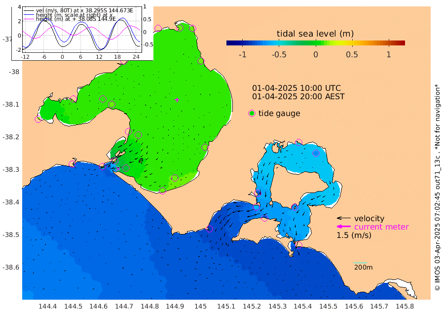 -84cm San Remo -69cm Elizabeth Island -68cm Bouchier Channel -51cm Tooradin -83cm Cowes Jetty -79cm Western Port (Stony Point) -59cm Western Port (Sandy Point) -88cm Flinders Jetty 12cm Mornington 13cm Sandringham 12cm Rosebud Jetty 12cm Hovell Pile -13cm South Channel -48cm Point Lonsdale -22cm Queenscliff 11cm West Channel Pile -69cm Barwon Heads 10cm St Leonards 13cm Point Richards (Corio Bay) 10cm Point Richards Channel 15cm Geelong 13cm Werribee 12cm Altona 12cm Wilson Spit 13cm Melbourne (Williamstown) 13cm St Kilda